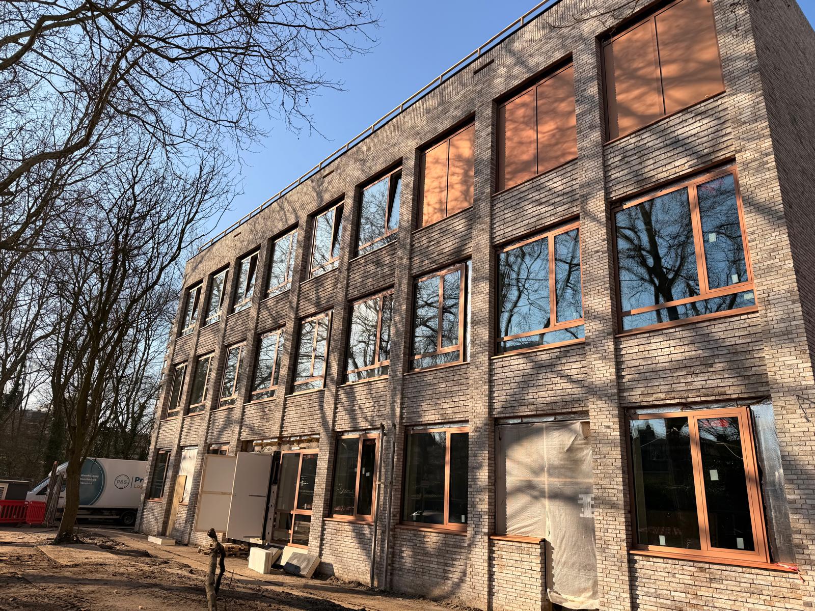 De bouw van het project maakt mooie stappen vooruit. Het metselwerk van de gevel is inmiddels grotendeels afgerond, waardoor het gebouw steeds meer zijn definitieve uitstraling krijgt. Ook de kozijnen zijn geplaatst en de grote raampartijen zorgen voor een open en moderne uitstraling.